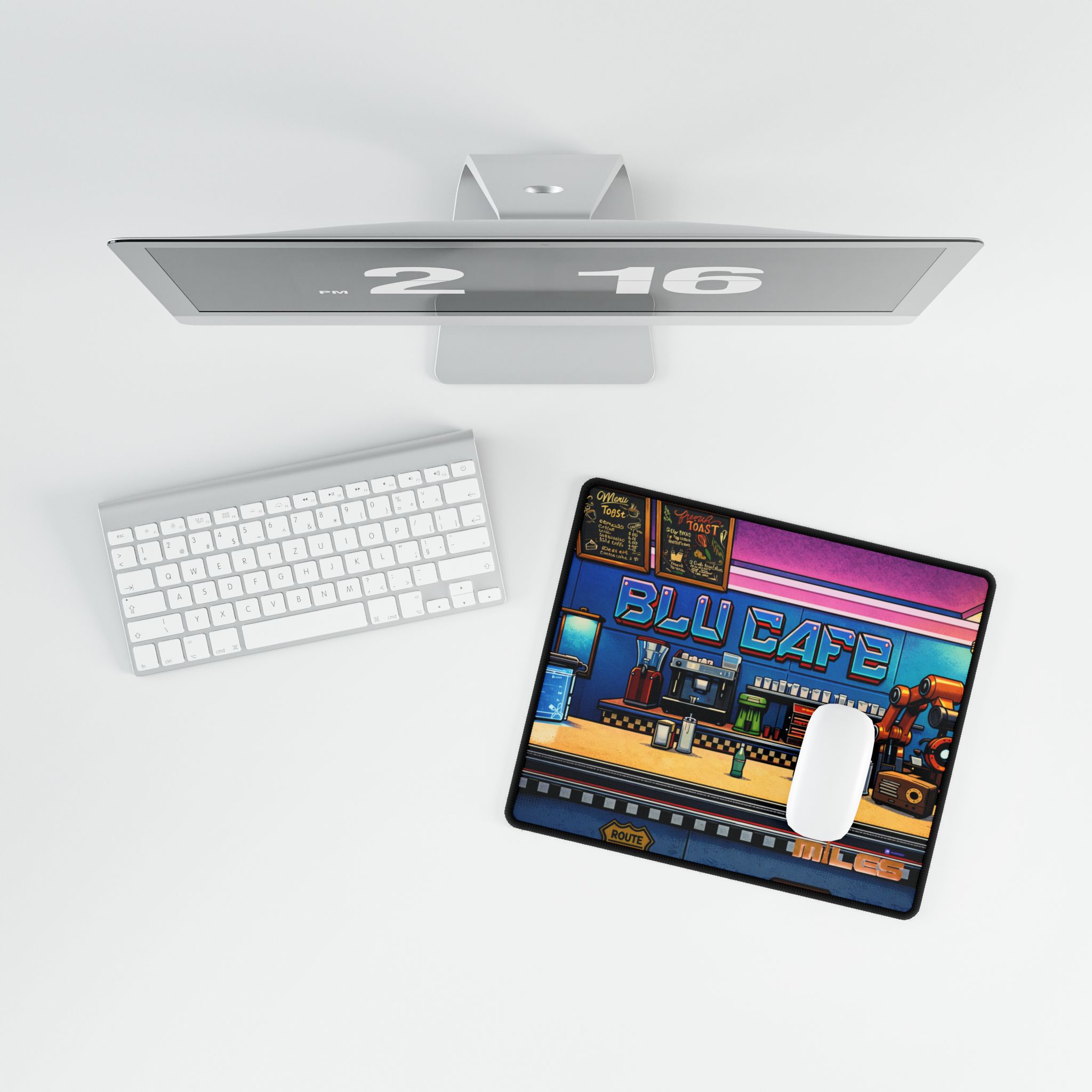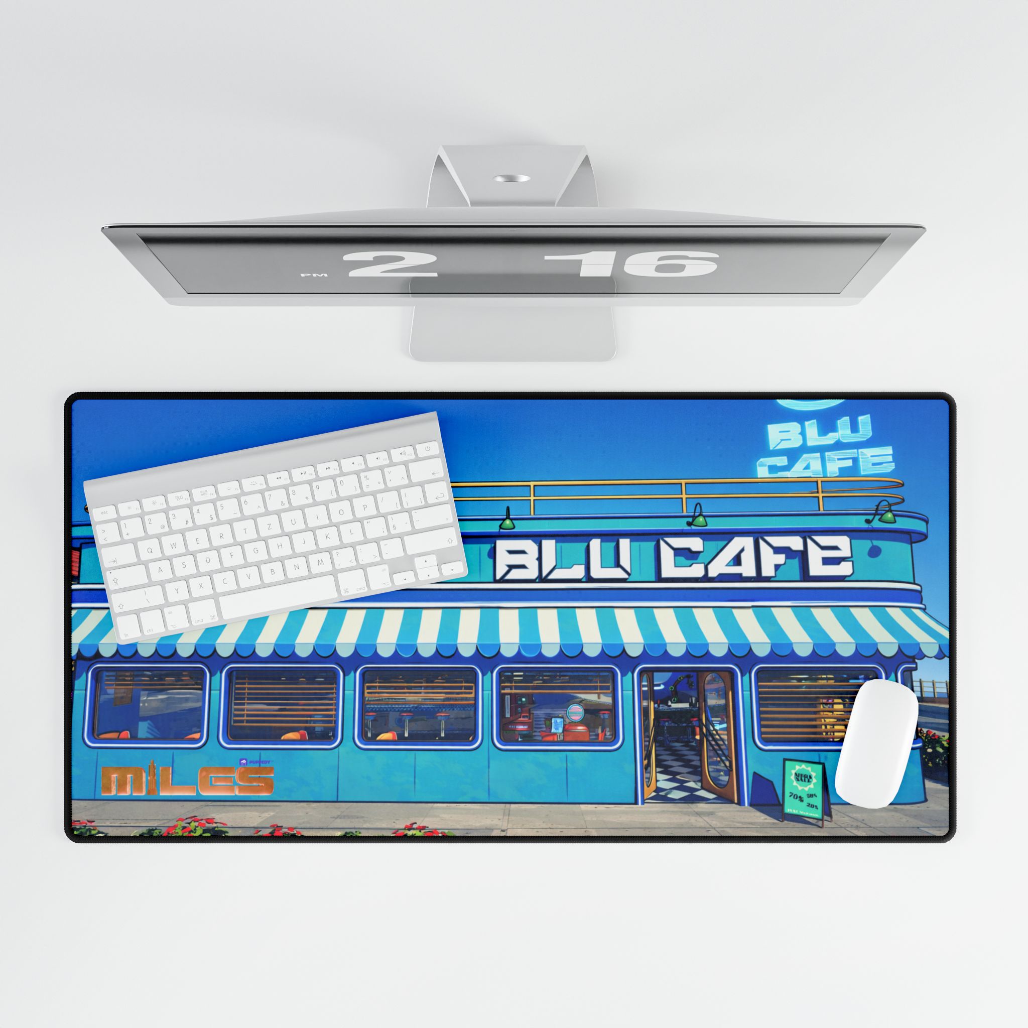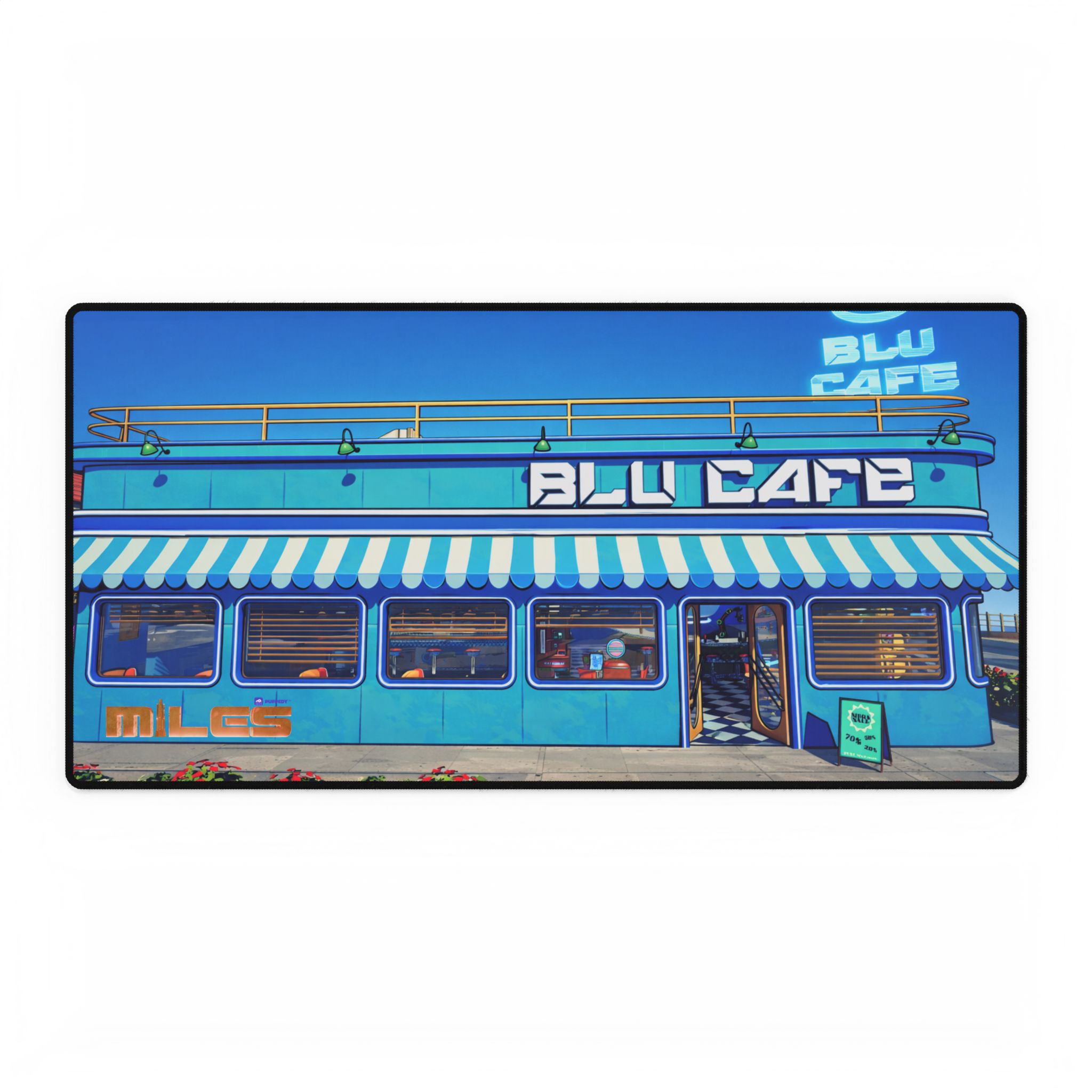 Bring the BLU Café vibe to your desk. This durable desk mat keeps surfaces safe from scratches and stains while making your setup feel tidy and intentional. The smooth top glides under your mouse, the non-slip base holds steady, and it resists fraying or pilling—perfect for both optical and laser mice. Comes in three different sizes and designs.